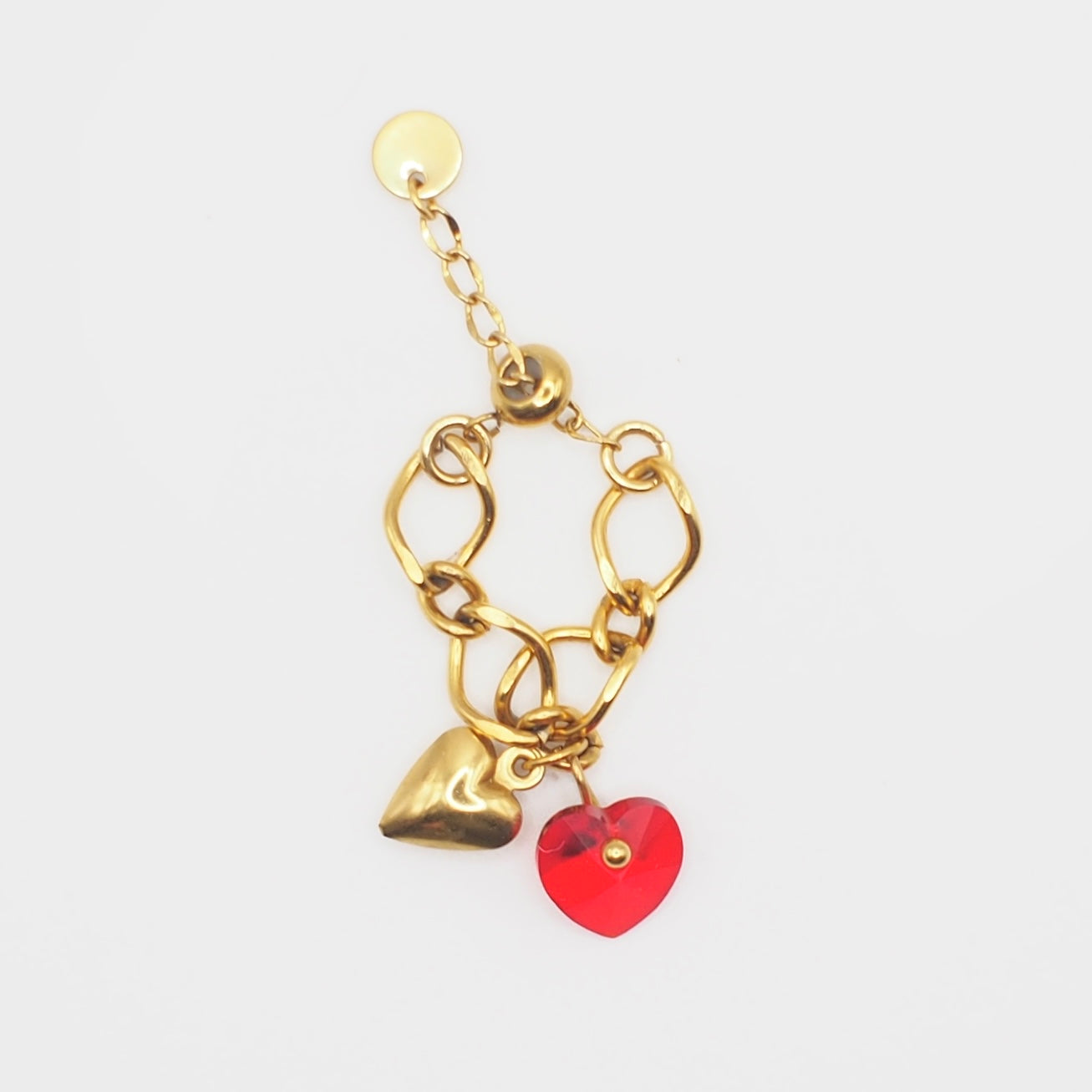 Une bague chaîne ornée de deux cœurs, pensée comme un bijou vivant et en mouvement. Ajustable grâce à son fermoir coulissant, elle s’adapte à toutes les tailles de doigt. Disponible en plusieurs coloris, le cristal capte la lumière et attire le regard, faisant de cette bague un modèle unique et original.