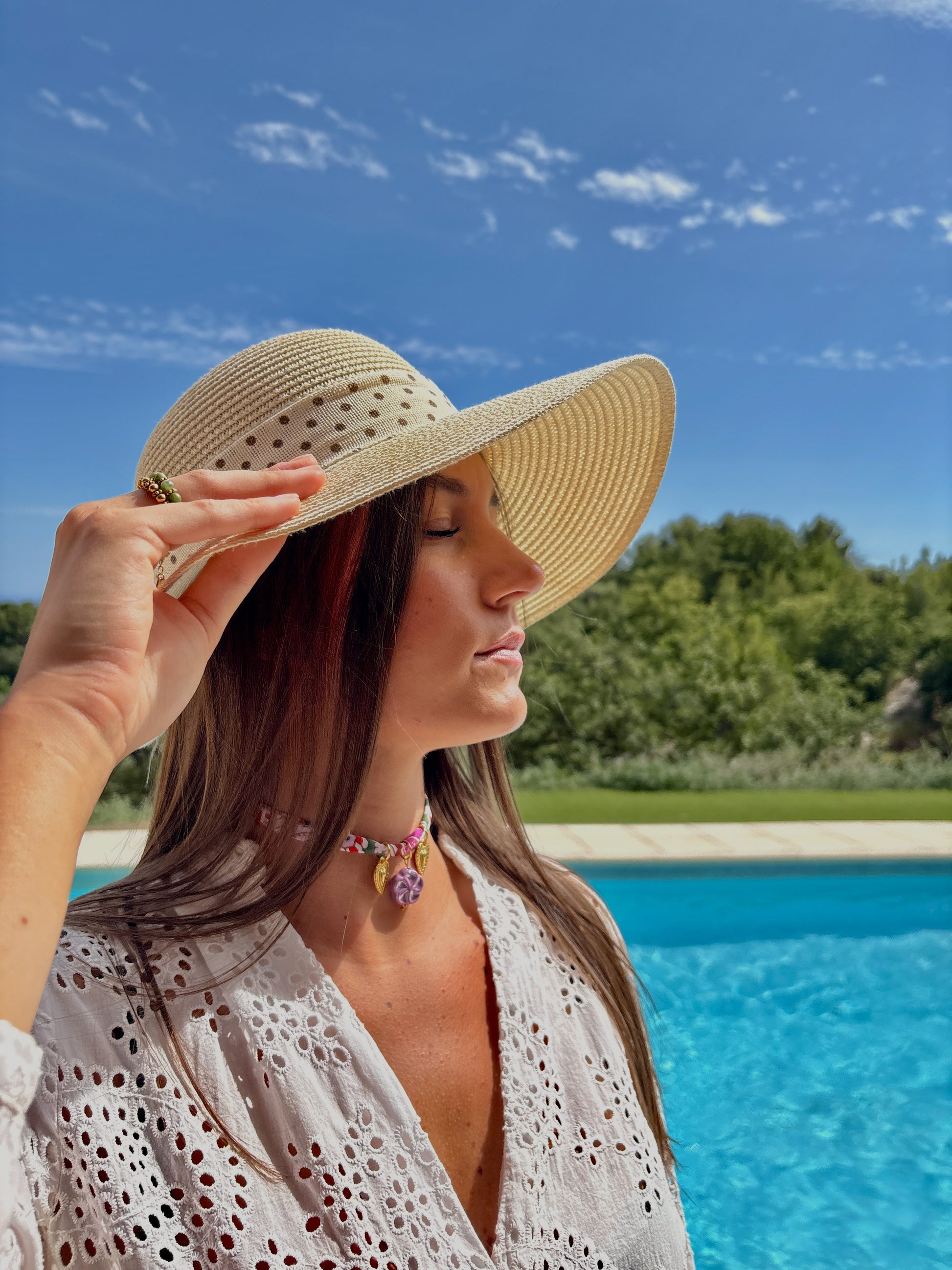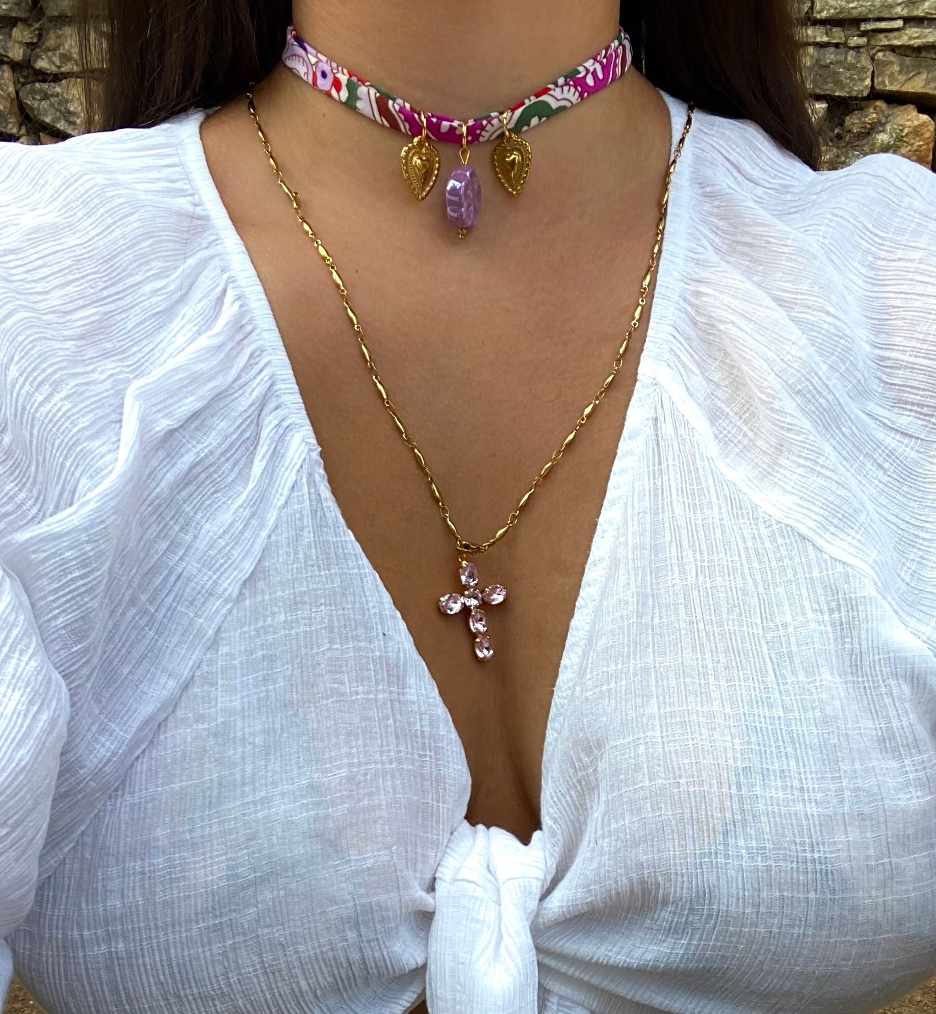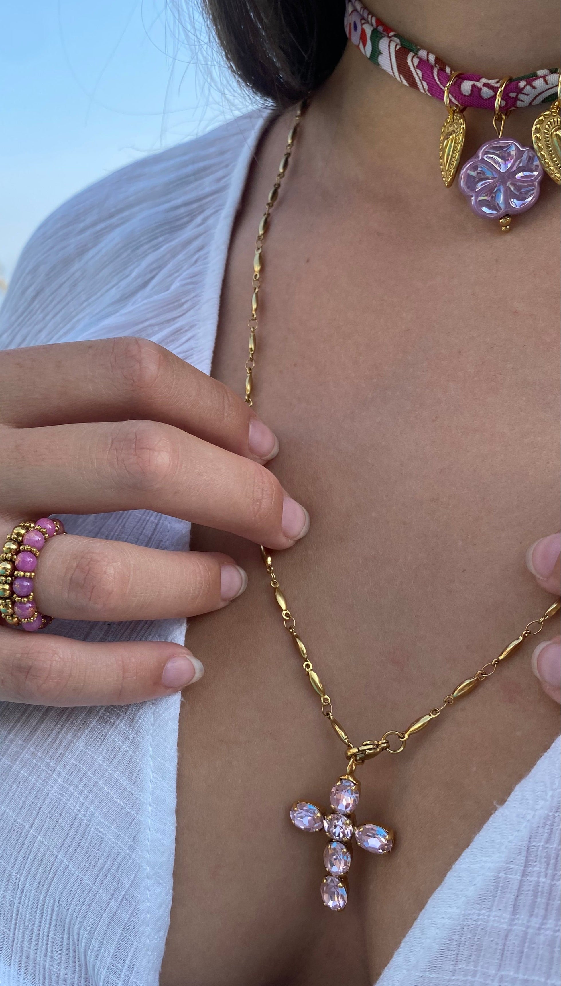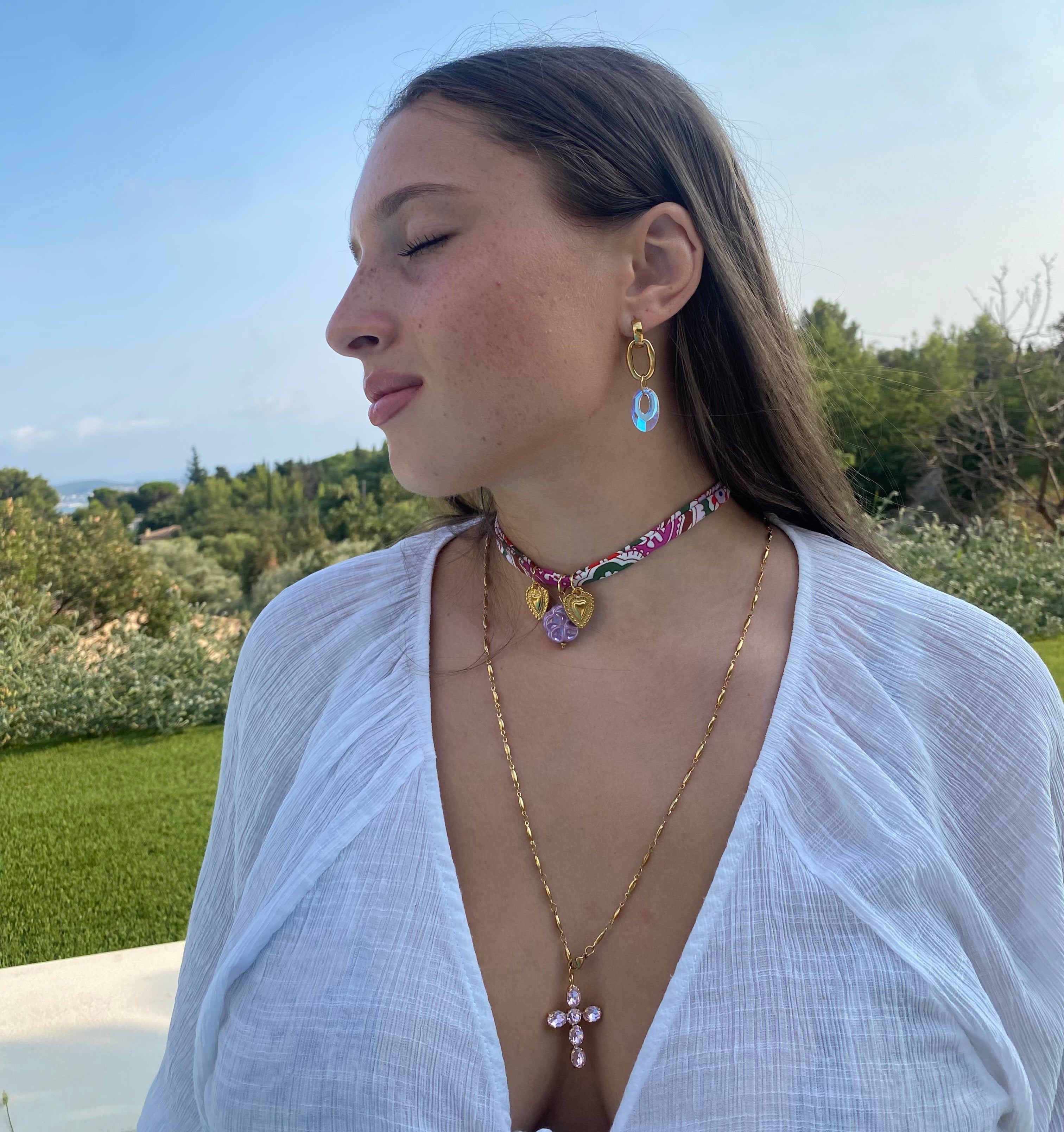Le collier Rosalia s’inspire de la fraîcheur des étés méditerranéens. Avec son motif fleuri et coloré, il apporte une touche de gaieté à vos journées..